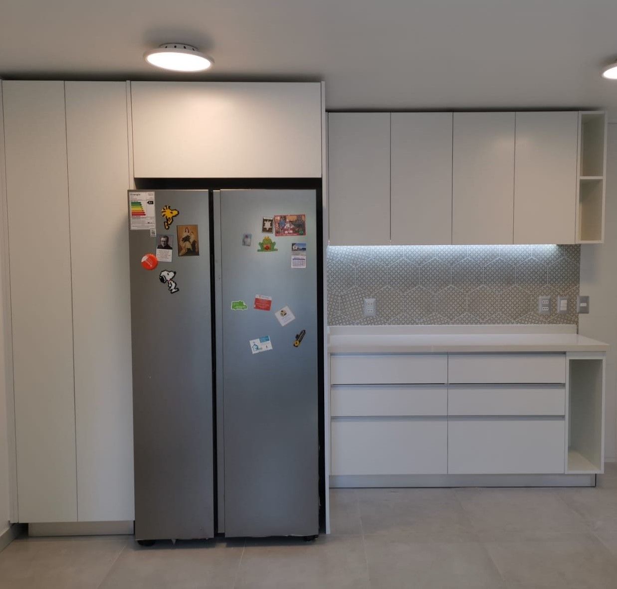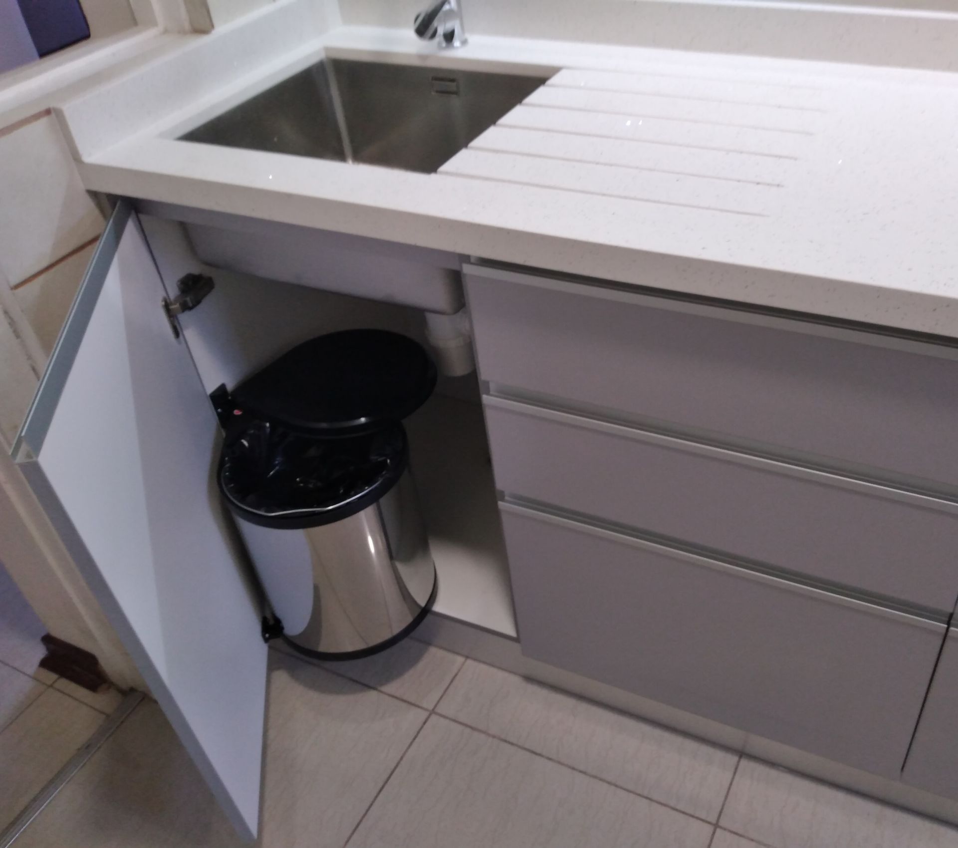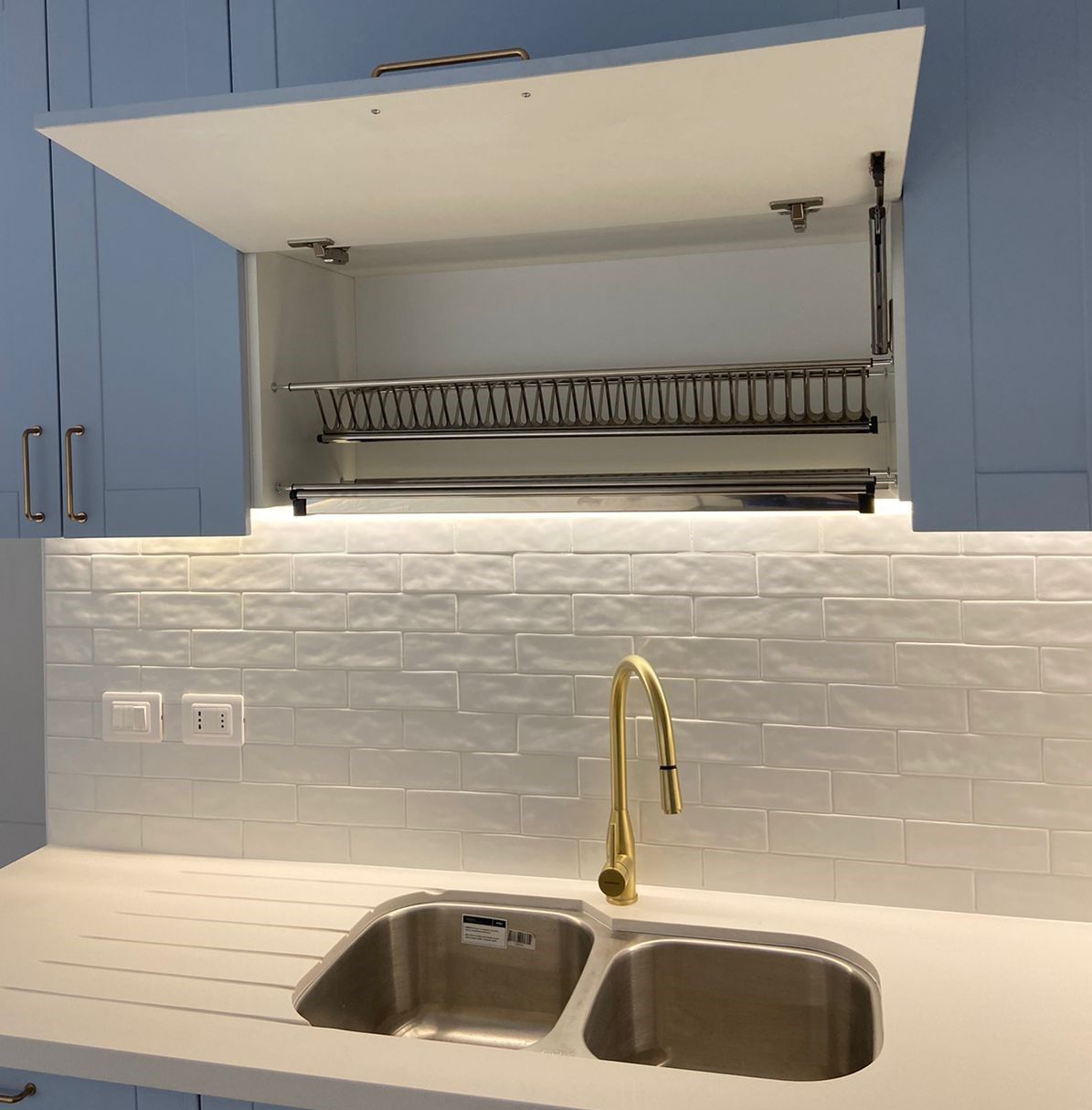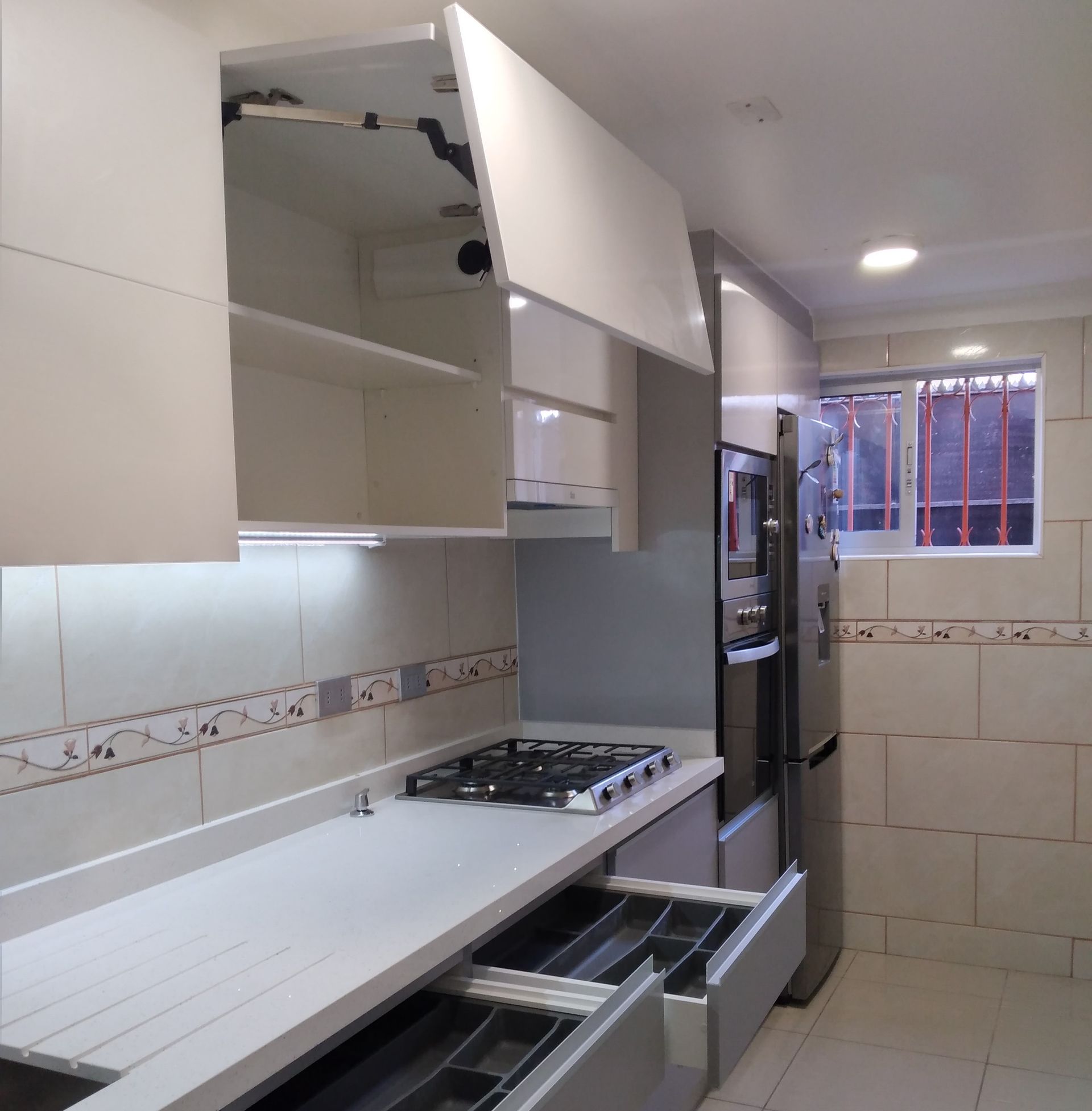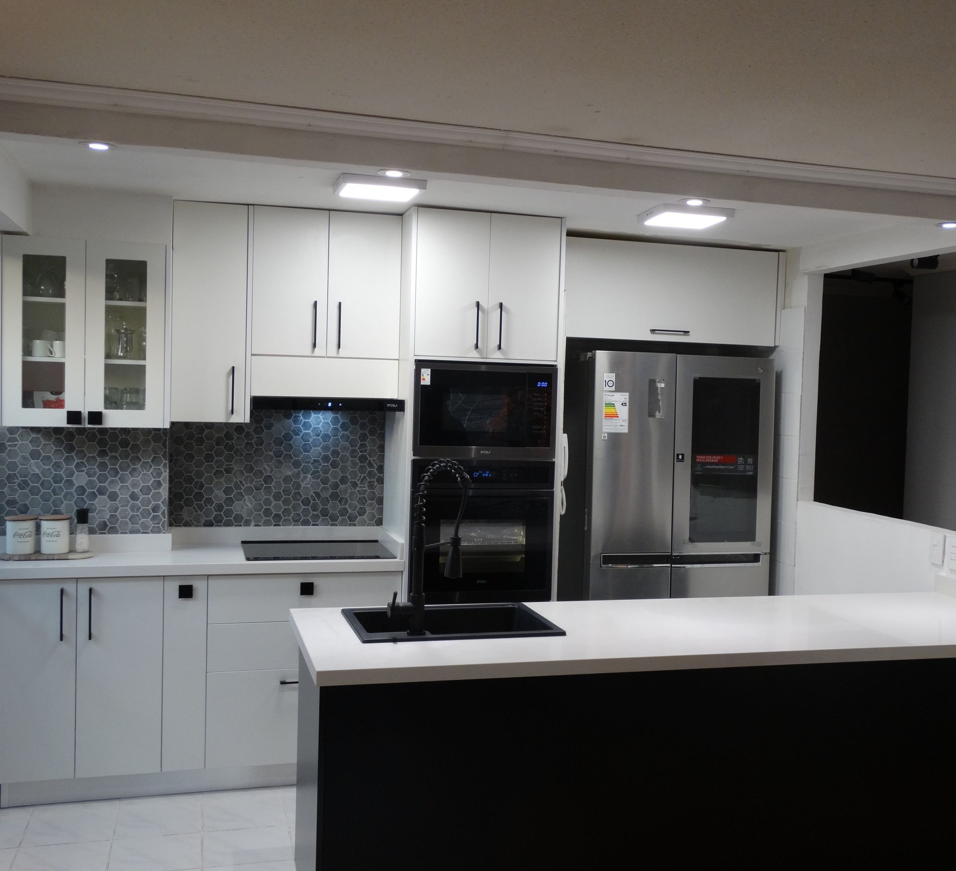 El módulo va montado sobre soportes de PVC, la instalación de la cocina se complementa con zócalo de PVC color aluminio de 10cm. y cubierta de granito o cuarzo.