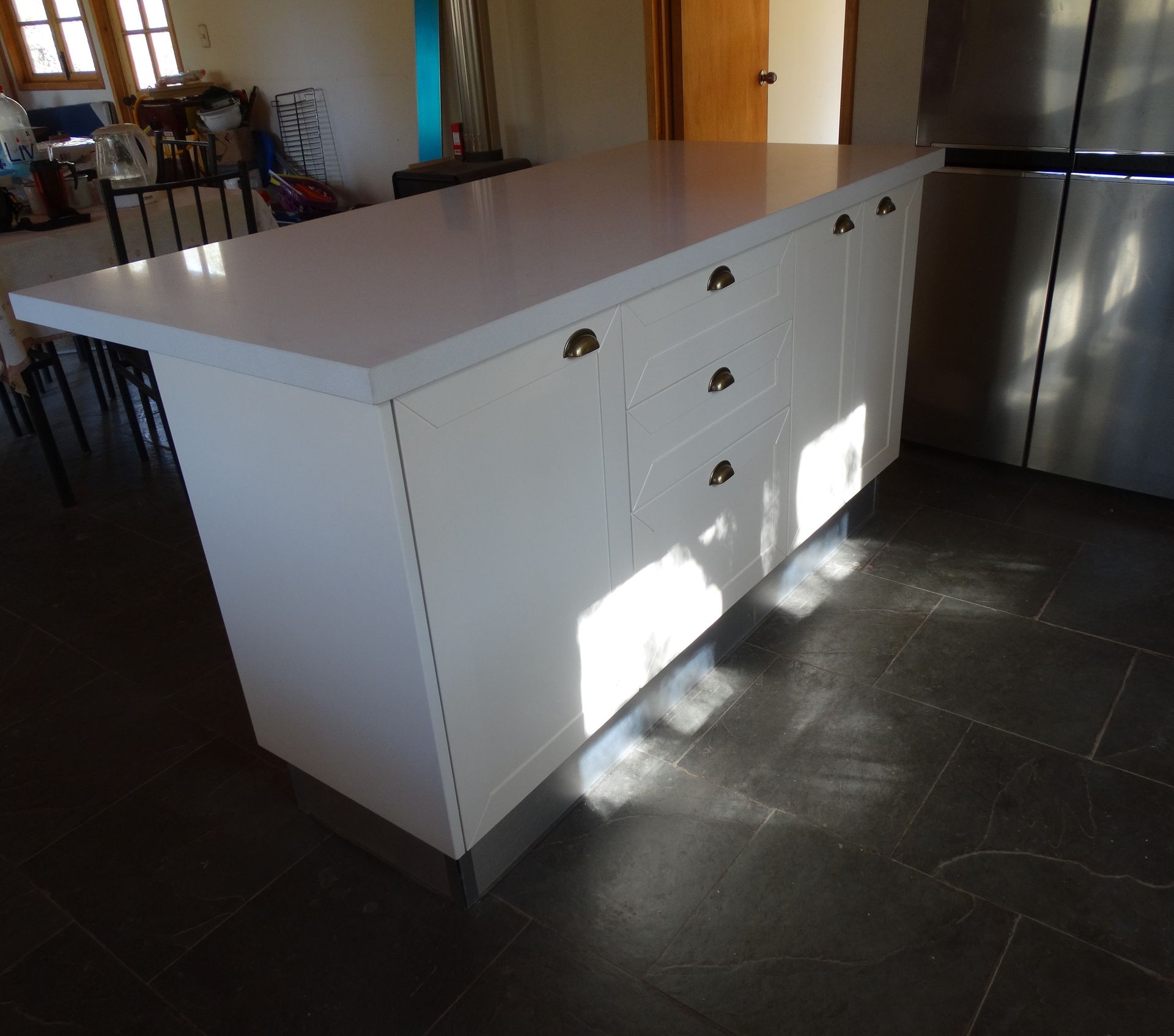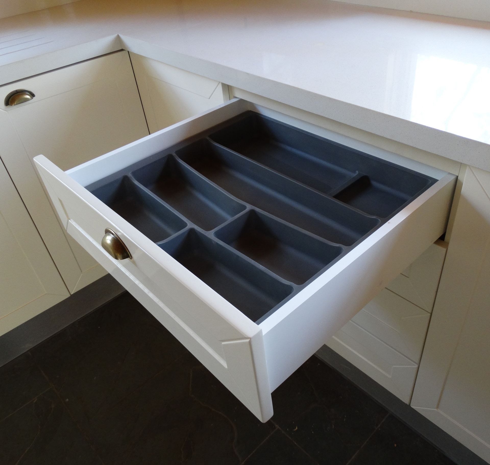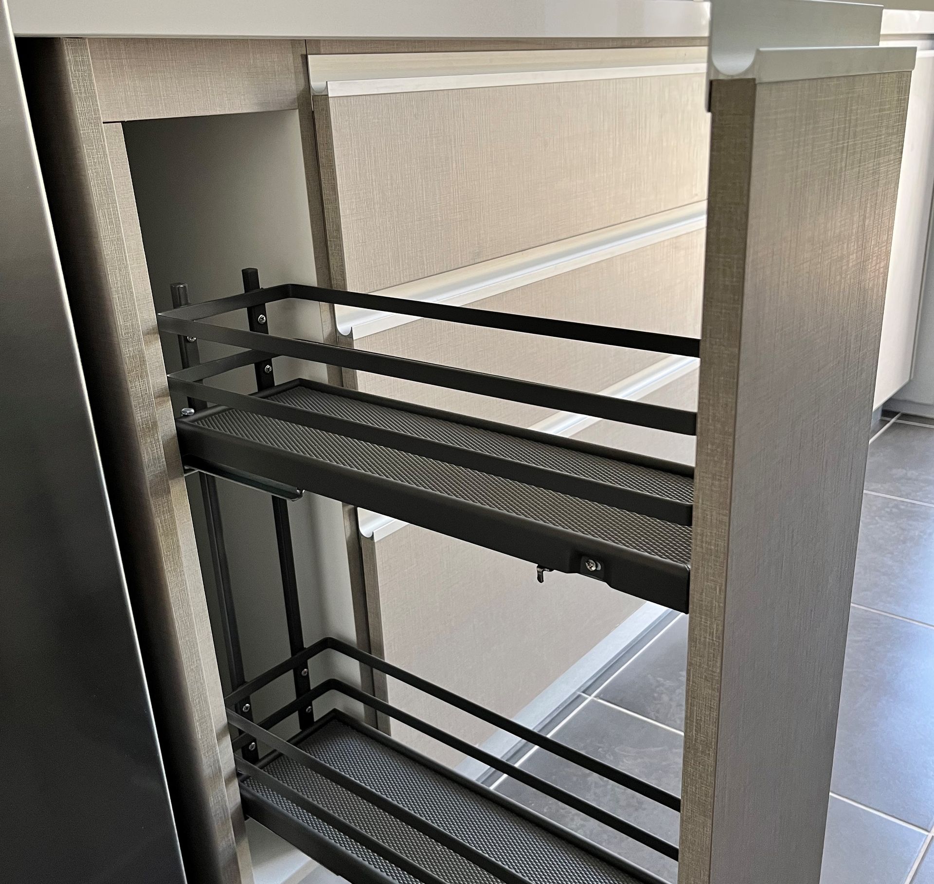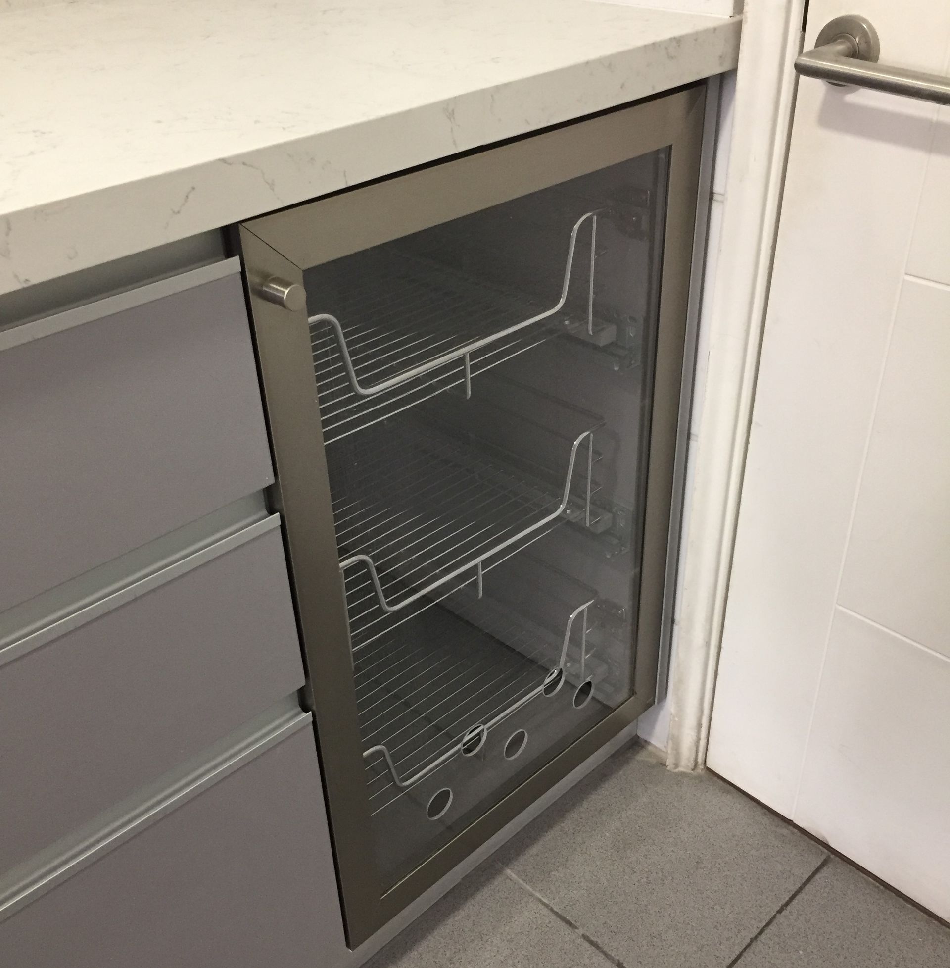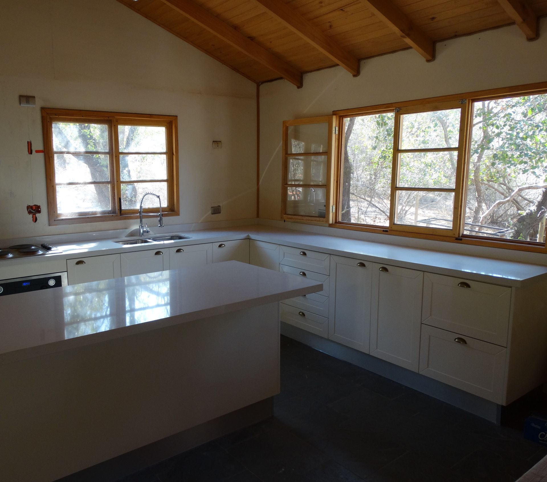 El módulo va montado sobre soportes de PVC, la instalación de la cocina se complementa con zócalo de PVC color aluminio de 10cm. y cubierta de granito o cuarzo.